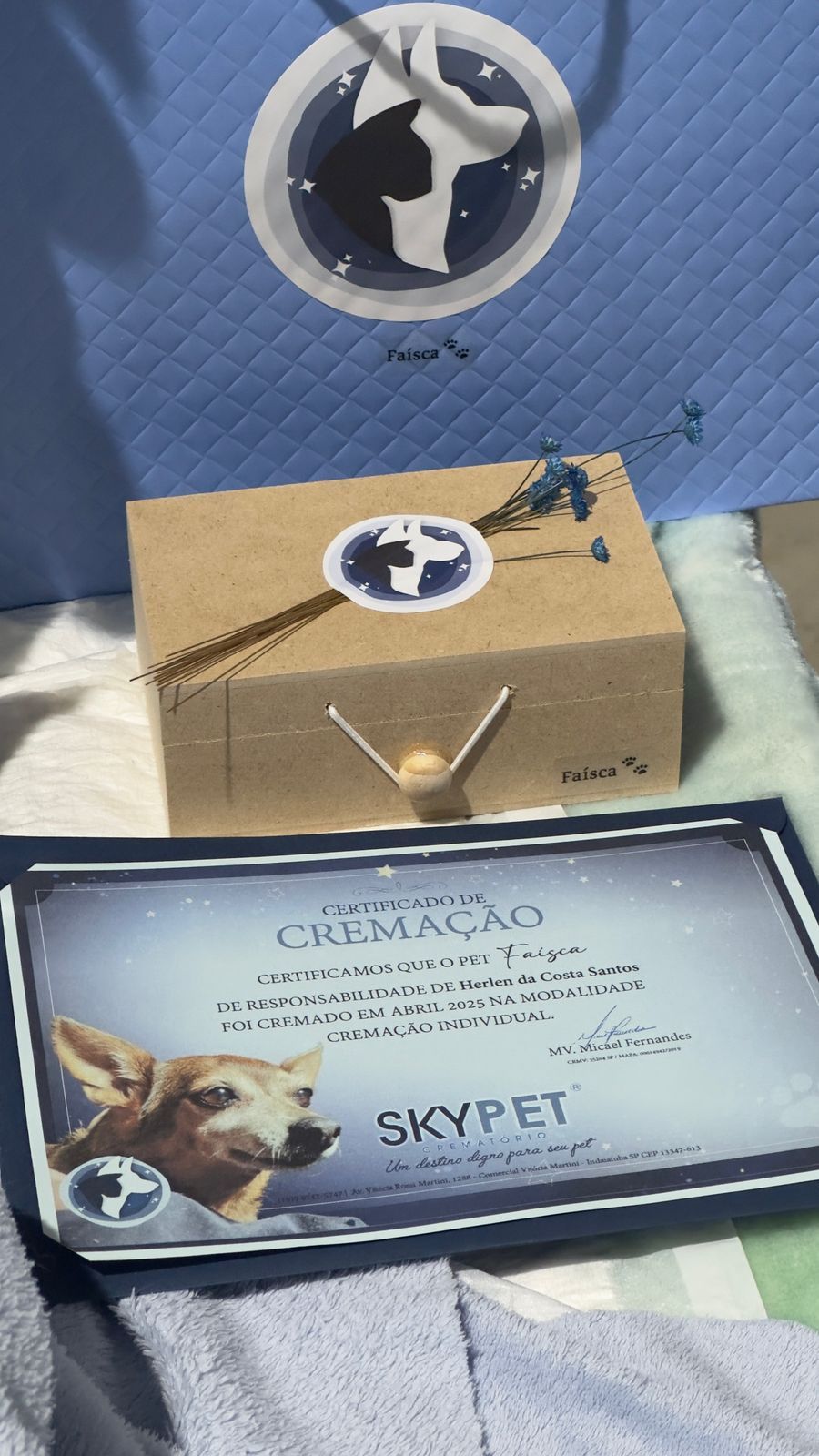 Após o procedimento, entramos em contato para agendar a entrega das cinzas ou certificado de cremação em sua residência conforme o plano escolhido.